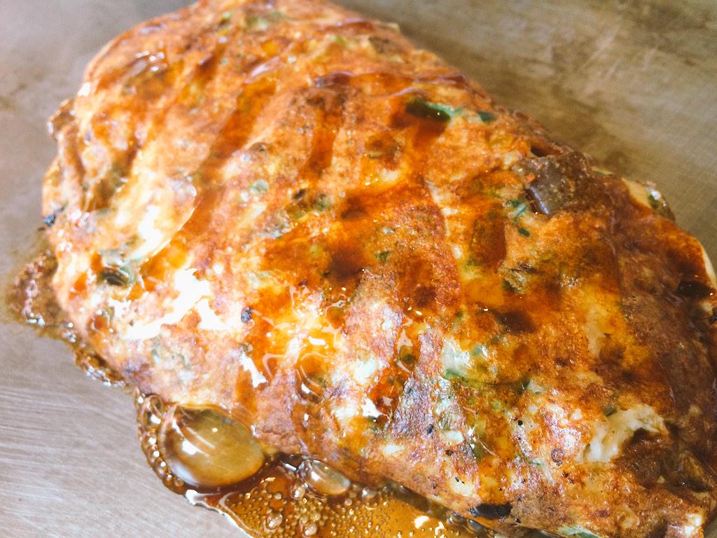 - お好み焼きともんじゃ焼きを合わせたような粉もん?